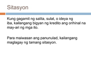 Sitasyon sa akda ng iba. Iba pang akda na tumatalakay sa sitwasyon ng. Simulan sa pamagat ng akda at tuldukan. The touch is careful.